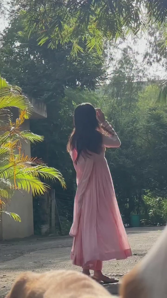 "Enhance your ethnic collection with this Pink Anarkali Kurta Set. Crafted from premium Mal Cotton, this outfit offers a soft, breathable feel and a flowy silhouette. The set includes an Anarkali kurta, matching cotton pants, and a coordinated Mal Cotton dupatta, making it ideal for festive and casual occasions.